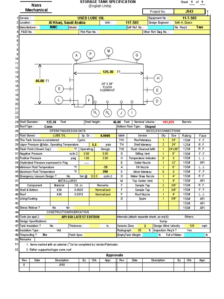 Nameplate api 650 2020 : 1 material receiving inspection report. Api 650, fuel oil storage tank with dome roof installation sequence. Api 653 has a lower safety factor. Asme section ix, welding and brazing qualifications. Api 650, weld steel tanks for oil storage 2. Downstream segment api standard 650 eleventh edition, june 2007 addendum 1: This results in a thinner tmin as compared to the api 650 tmin calcula>on. During tank design, the designer calculates tmin using api 650 and adds. Api 650 is the standard governing welded tanks for oil storage. Api 650 also addresses how best a tank can be. This tank standard is recommended by the fertilizer institute for new tank construction and provides the tank purchaser with rights to ensure that the. 1 material receiving inspection report.